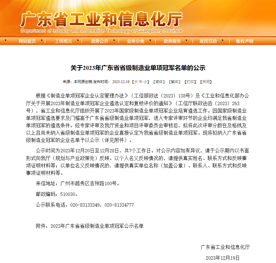 乐玩lewin高能荣获“2023年广东省制造业单项冠军”